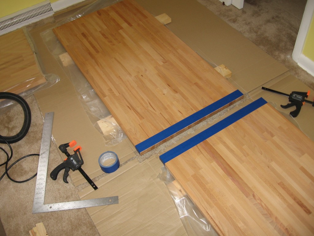 2. Glue the counter top end-to-end using urethane glue and pocket screws as clamps
